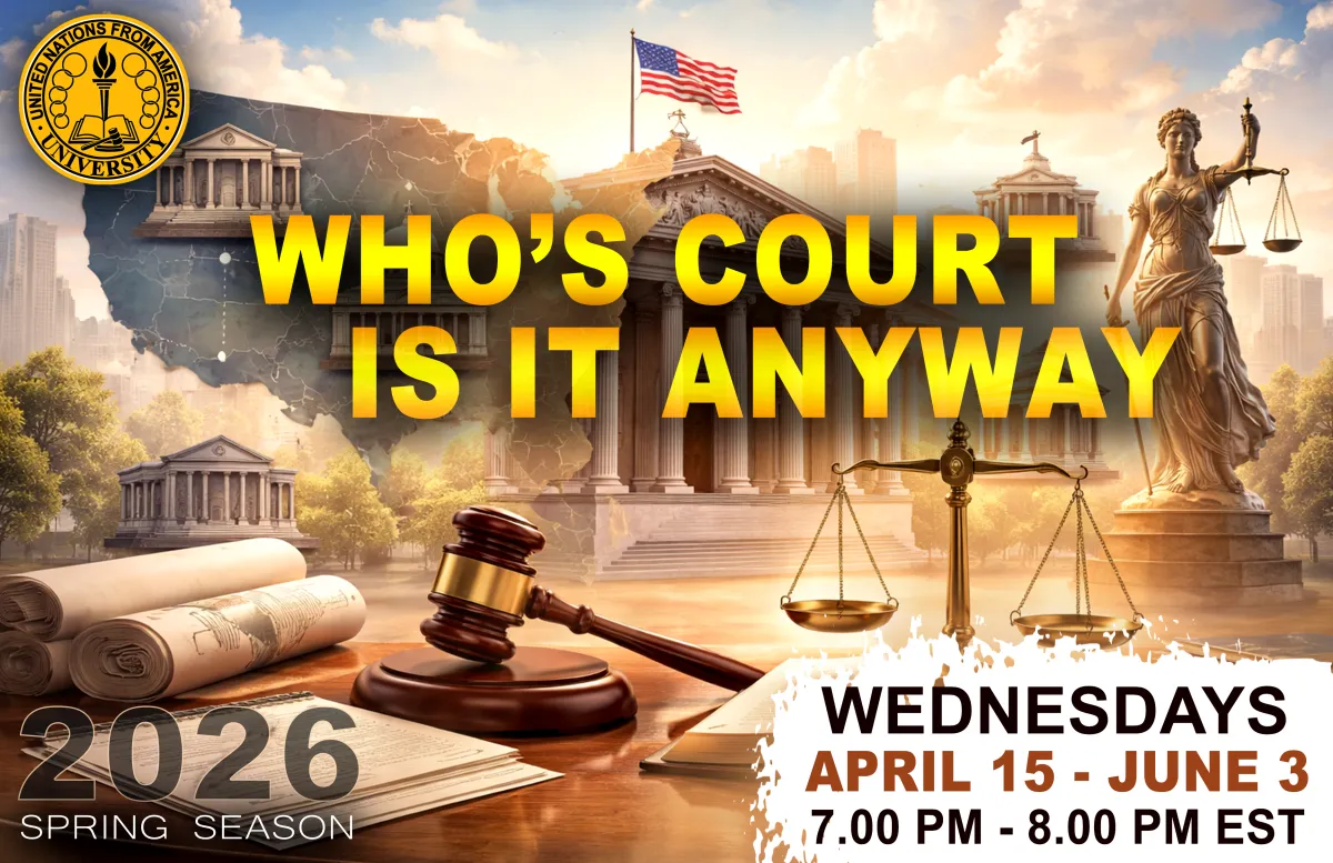Welcome to UNA University where we focus on sovereignty and nation building. We are honored that you have chosen to study with us. We offer many different courses throughout the year including the fundamentals of sovereignty and contract law as well as the study of the Universal Laws and the make-up of the basis of our dimension.
